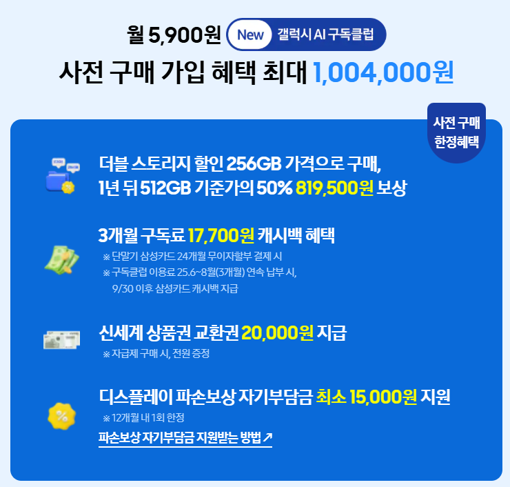 - New 갤럭시 AI 구독클럽 가입 가능