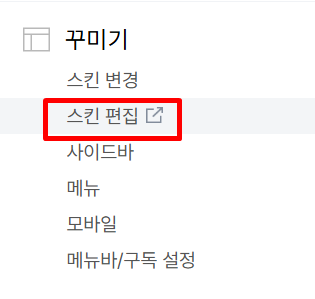 블로그 관리>꾸미기>스킨 편집을 들어가 줍니다.
