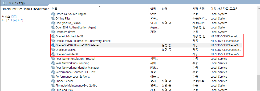 - 서비스(services.msc)에 들어가 리스너 상태가 어떤지 확인합니다.