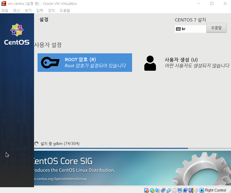 설치가 시작될 때 root 암호를 지정할 수 있습니다. 원하는 root 암호를 지정해 주면 끝!입니다.