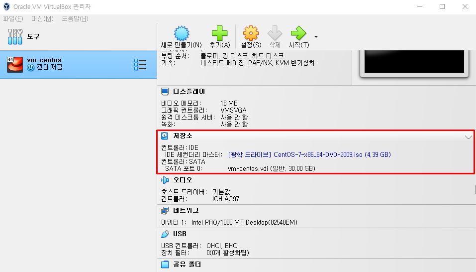 이제 다운로드 받았던 iso 파일을 넣어 OS를 설치해 줄 차례입니다. 저장소-컨트롤러: IDE-IDE 세컨더리 마스터에 우리가 다운로드한 iso 파일을 넣어줘서 다운로드한 iso 파일로 부팅되도록 설정합니다. 이제 실행해 봅시다.