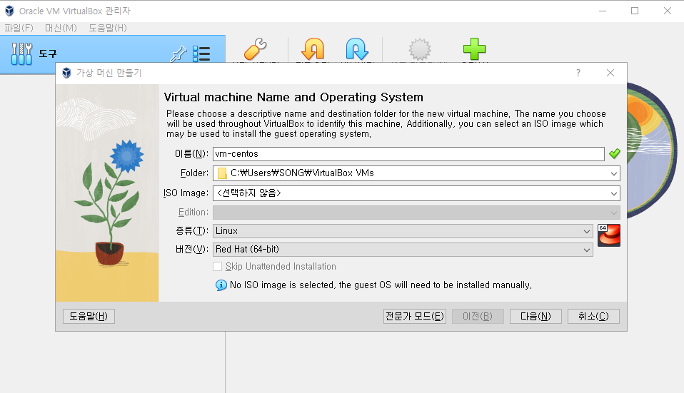 자 이제 iso 파일은 다운로드하셨습니다. 다음은 iso 파일로 vm에 올리고 설치해야 합니다. 저는 Oracle VirtualBox에 설치해보려고 합니다. 새로 만들기(N)을 선택하고 이름을 넣어주고 다음을 눌러줍니다.