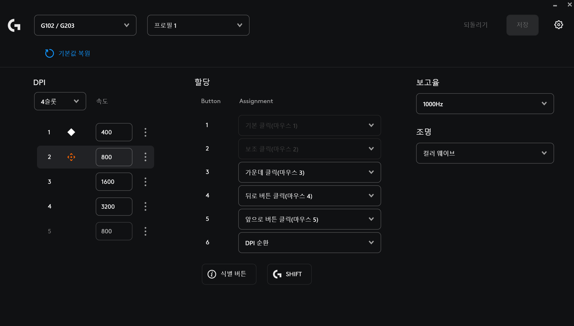 4. 마우스 폴링레이트, DPI, 버튼 할당, LED 설정 등 주요 마우스 기능들을 설정/변경할 수 있습니다.